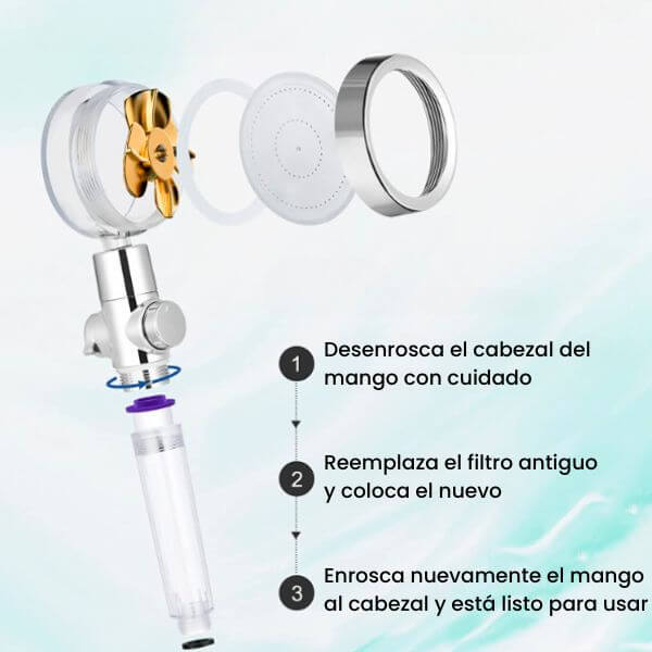 R: El cabezal de ducha tiene un diseño desmontable que facilita el cambio del filtro. Simplemente desmóntalo y reemplázalo por uno nuevo.